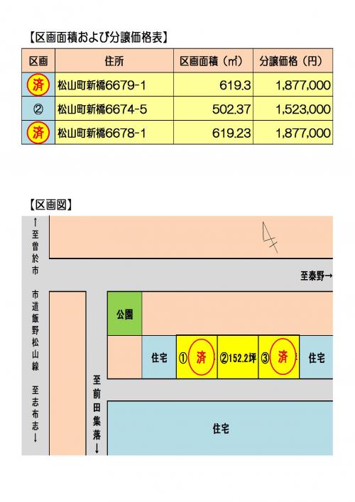 - 新橋地区は自然豊かです。分譲面積は広めの区画となっています(1区画151坪~)。